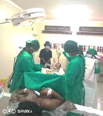 Bulamu’s team during a surgery at the newly reopened operating room in Isingiro District.